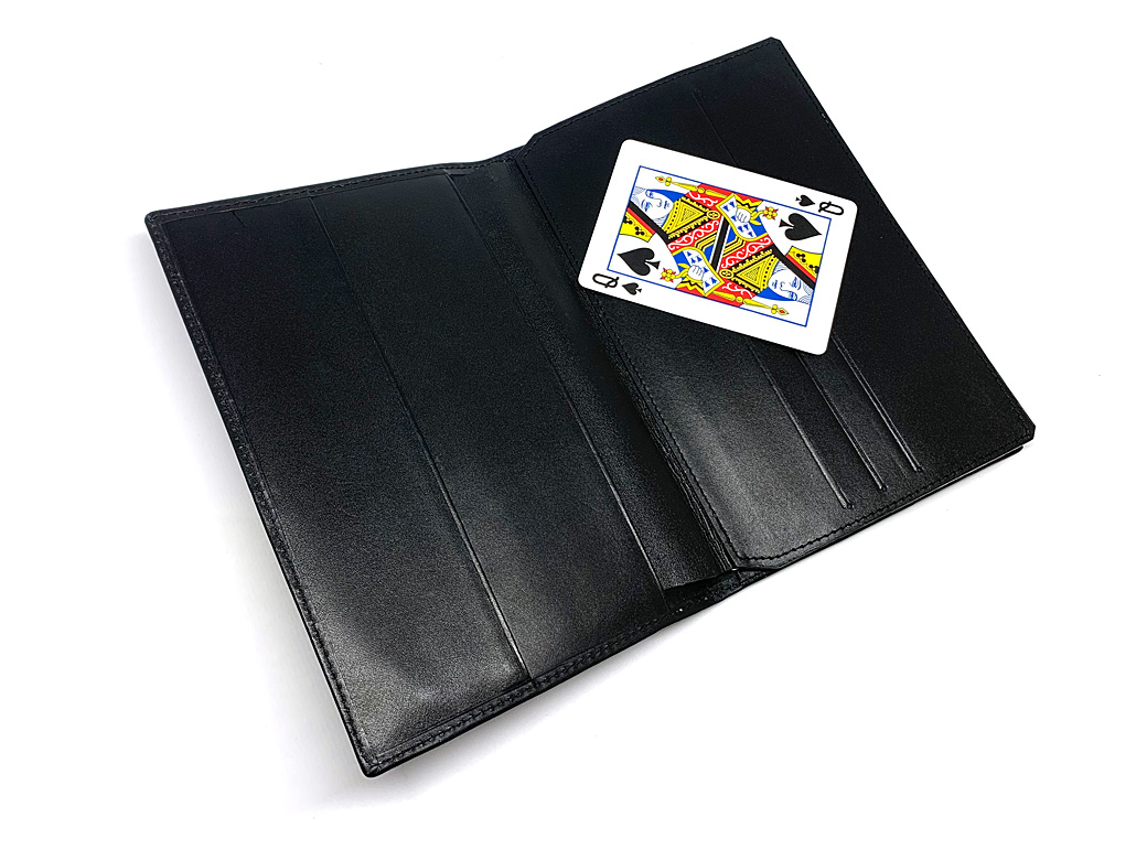 今回はエニー・カード・トゥ・ウォレットです。観客が自分でデックを見て、声に出さずただ心に思ったカードが、マジシャンの財布に移動します。どのカードが選ばれても問題ありません。スチールやパームをすることなく、ほぼほぼ自動で移動します。